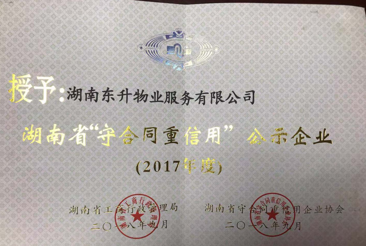 • 2018年湖南省守合同重信用企業
